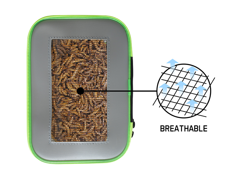 Praktická taška urèená primárne na kostné èervy a iné druhy živých návnad. Veko je tvorené perforovanou èiernou siekou, ktorá zabezpeèí èervom dostatok vzduchu, zabráni prehrievaniu a tým udrží vašu návnadu dlhšie živú a èerstvú. Taštièka je èiernej farby so sivým vekom, výrazným -dobre vidite¾ným zipsom, ktorý ju dokonale uzavrie a tým zamedzí neželanému úniku èervov.