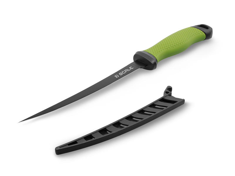 Nôž je opatrený mäkkou a ve¾mi príijemonou ergonomickou rukoväou s protišmykovým povrchom, ktorý navyše pripomína tvar šupín, èo nepochybne poteší množstvo rybárov. Èepe¾ je chránená ochranný plastovým puzdrom pre bezpeèné skladovanie a transport.