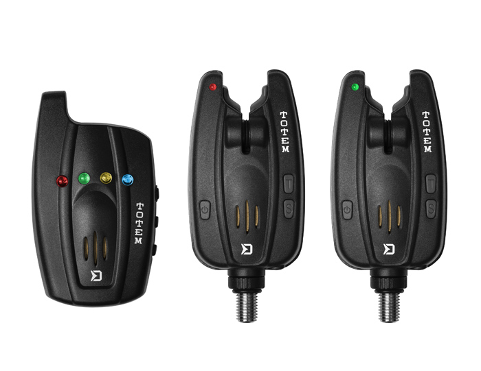 Extrémne kompaktné rozmery signalizátora a prijímača v ergonomickom tvare. Delphin TOTEM ponúka úplnú vodeodolnosť signalizátora a prijímač so skvelým dosahom až 150m v závislosti od okolitých podmienok. Signalizátor má ultra jasnú LED diódu s veľmi dlhou výdržou. Je napájaný 9V batériou čo zabezpečuje jeho dlhú dobu prevádzky. Dobrou vychytávkou je alarm, ktorý krátkym pípnutím a svietením LED diód upozorní na zníženie stavu kapacity batérie pod 5V (takisto pípne aj prijímač). TOTEM ponúka možnosť otestovania všetkých jeho funkcií. Má 4 úrovne hlasitosti vrátane tichého režimu, 4 rôzne tóny a 4 úrovne citlivosti. V tme určite oceníte možnosť zapnutia nočnej diódy. Vstup pre 2,5mm jack umožňuje pripojenie svietiaceho signalizátora záberu. Hrubé pogumovanie v časti kontaktu prúta so signalizátorom zamedzuje poškodenia prúta. Signalizátor po zábere svieti 15 sekúnd (takisto prijímač). Prijímač je napájaný 3 kusmi AAA batérií. Na zadnej strane má umiestnený odopínateľný klip pre upevnenie napríklad za opasok. Samozrejmosťou je tvrdý transportný kufrík pre bezpečný transport a ochranu sady mimo sezóny, tento kufrík pojme sadu až do konfigurácie 4+1. Prijímač má 5 úrovní hlasitosti vrátane tichého módu a možnosť nastavenia 4 úrovní tónu. TOTEM je kvalitný signalizátor so všetkými funkciami, ktoré využijete pri rybačke. Nočná LED dióda, vodeodolný alarm aj prijímač či test funkcii s upozornením na slabé batérie. To je iba pár výnimočných funkcii signalizátora Delphin TOTEM.